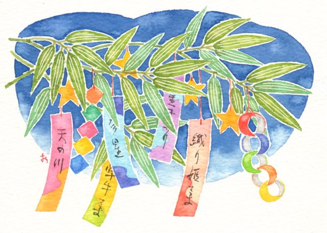 ●七夕 七夕が日本に伝わってきたのは平安時代のこと。初めは宮中行事として行われていましたが江戸時代になり、やがて庶民へと広がっていきました。庶民が短冊を吊るすようになったのも江戸時代からのこと。寺子屋で学んだり習い事をする子どもが増えた時代でもあり、その上達を星に願うようになりました。なので七夕の願い事には欲しいものなどを願うのではなく、夢の達成や実力アップなどの願いごとをするのが良しとされています。